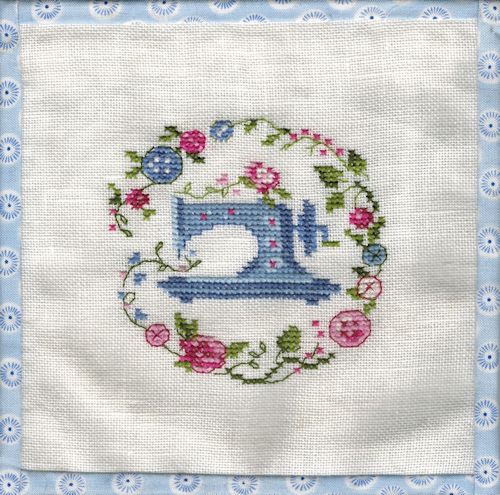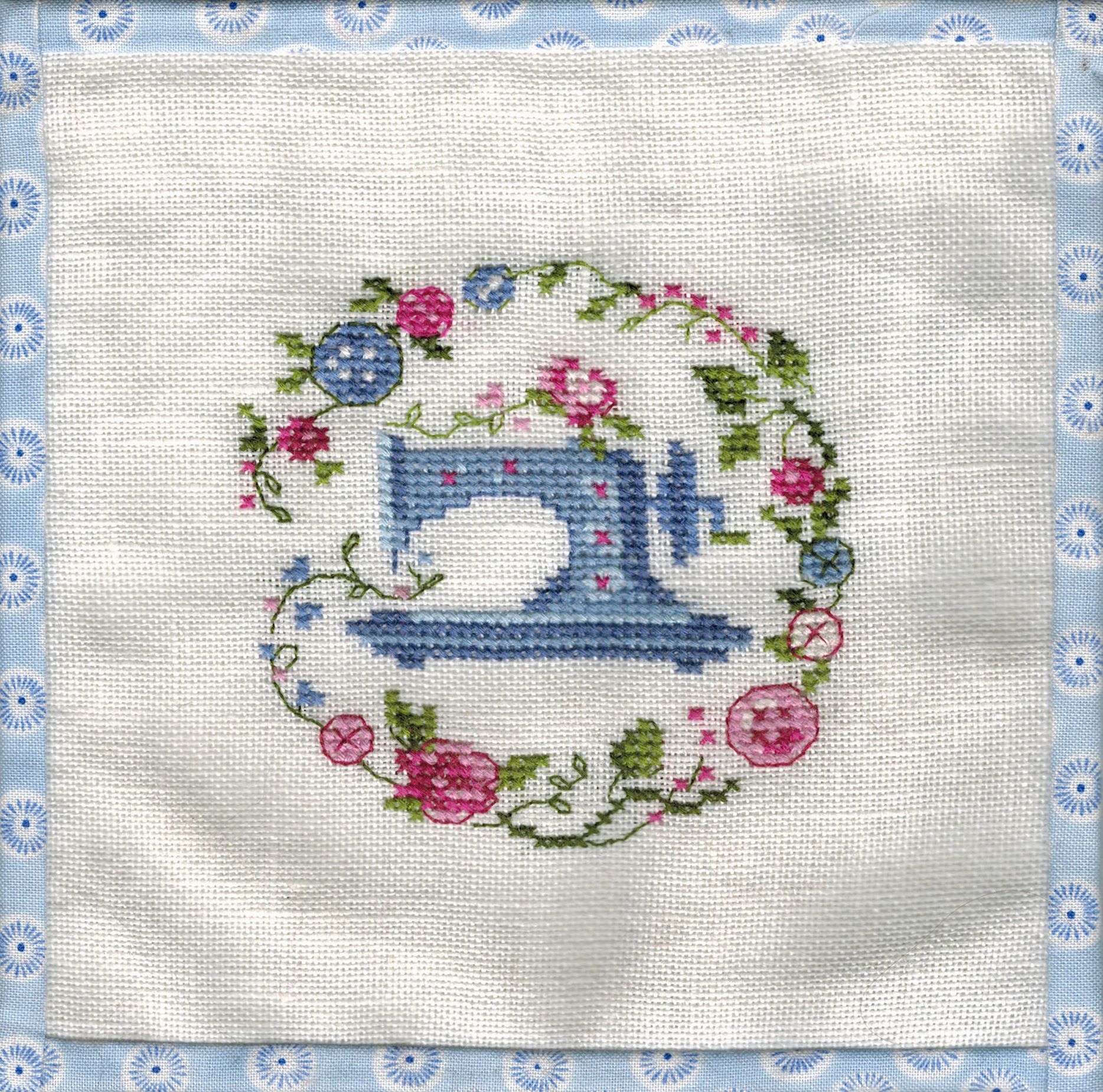 Nähmaschine im Blumenkranz